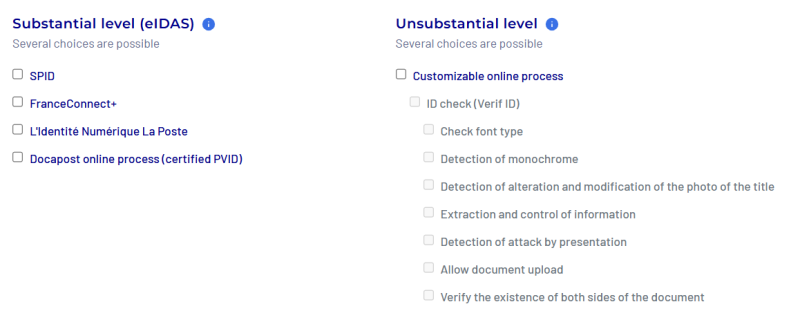 This section allows you to add fields that the user must manually fill in. In API mode, it is possible to send fields such as first name, last name, and date of birth. This information will then be compared with data extracted from identity documents or provided by external electronic identification methods such as La Poste Digital Identity.