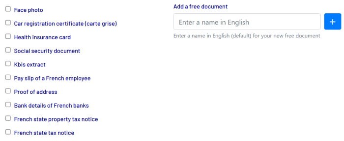 - Add a free document: Enter the title of the document you are interested in under “Add a free document.” Note that these documents are collected only and will not be subject to validation checks. This option allows you to include documents that are not listed.