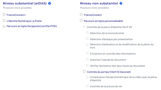 - Niveau substantiel : pour réduire substantiellement le risque d’utilisation abusive ou d’altération de l’identité (équivalent à une vérification en face à face physique)